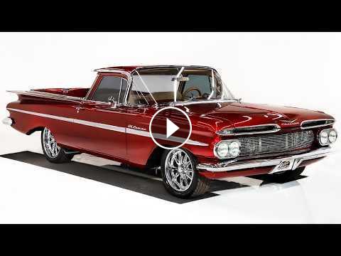 EXTERIOR: This color is off the charts; it looks like a wet piece of candy. The deep metal flake is laid out evenly and a clear coat is as glossy as it gets. The bodywork was done with precision and care, it is laser straight and fits right. Of course, it has the famous '59 Chevy batwing fins and cat eyes taillights. Someone must have been friends with a chrome plater because the chrome and trim on this car sparkles like jewelry. Every single piece of chrome is redone, every piece of stainless is polished like chrome. It has a custom grill, the cowl panel, tailgate, and door hinges were chromed. It has dual bowtie mirrors. All new smoked glass including the big, curved rear window. It's sitting on a brand new set of chrome US Mags: 18s in front 19s in back and they're wrapped in new performance tires.