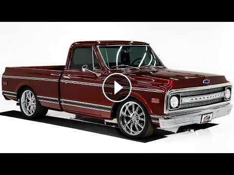 EXTERIOR: The exterior has a jaw-dropping finish that looks like a piece of wet, hard candy. Beautiful burgundy metallic, the paint glows with depth and richness, and the clear coat has been polished to a glass-smooth shine. The metallic is laid out evenly across every panel, producing crisp highlights and a liquid appearance that truly sets this truck apart. Equally impressive is the bodywork. The panels are laser-straight with no signs of rust, damage, or waviness, and the fit is excellent throughout. Doors, hood, and bed all align properly. The brightwork appears to be replaced, including the deluxe side moldings, vent window frames, grille, bumpers, emblems, mirrors, and marker lights. It even features new smoked glass and fresh weatherstripping throughout for a clean, finished look. Completing the stance is a set of 20 inch Riddler wheels wrapped in Michelin Pilot Sport All-Season performance tires.