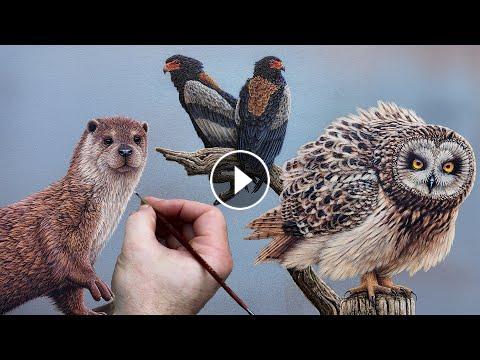 Adding the final touches to a new collection of wildlife paintings: an otter moments before it dives, a short-eared owl shaking raindrops from its feathers and a Bataleur eagle pair.