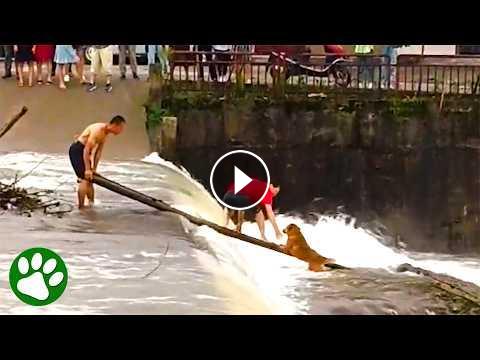 Brave Men Rescue Dog From Rushing River #Video