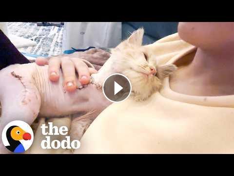 He needs to be called the "Comeback Kid". Wow. That was a really rough start. Poor thing was brutalized. Amazing recovery. A three-legged cat is not too difficult to place. Dang, he was fast on those three too. This lady is an Angel. What an incredible recovery. No doubt his forever family is in the near future.