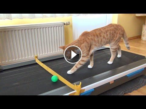 This is the funny reaction of a cat named Indy to a treadmill. He was a little scared at first but then he quickly learned how to walk on it.