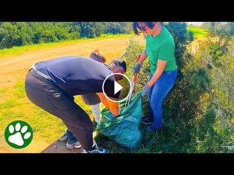 While cleaning up trash in Cyprus, a group of volunteers suddenly hear something unexpected… movement coming from inside a plastic bag.