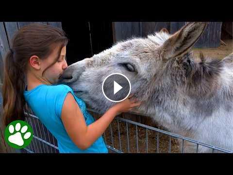 Watch this adorable video of a young girl sharing sweet hugs and kisses with a donkey, showcasing a truly heartwarming connection. Their bond highlights the incredible kindness and emotional depth animals can bring to our lives. This inspirational interaction is a touching moment that reminds us of the pure love between humans and animals