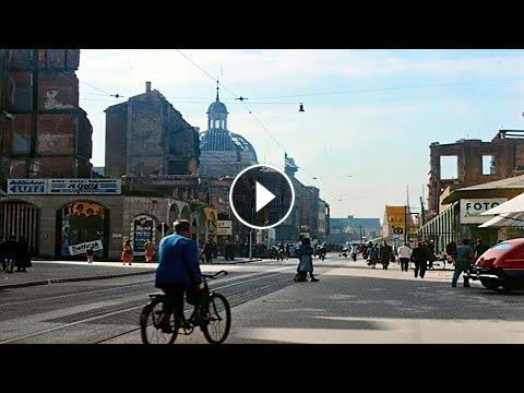 I colorized, restored, and created sound design for This rare 1946 captures postwar Germany through striking scenes from Munich, Nuremberg, and Würzburg — cities torn by war but slowly coming back to life. In Munich, the camera moves through streets filled with rubble, empty buildings, and an almost eerie silence, where a few civilians walk among the ruins. At the train station, a mother and daughter wait on the platform while trains pass through damaged depots, and views from the window reveal a quiet countryside beginning to heal. Further scenes show men with carts, trolleys filled with passengers, and children playing — small moments of normal life returning. In Würzburg, the city feels alive again: crowds gather around the Lower Market Square, the statue of Julius Echter von Mespelbrunn stands over a bustling scene, and women sell flowers near St. Mary’s Chapel as new posters appear beside crumbling walls. Finally, the film closes in a cemetery where families visit graves covered with flowers — a tender reflection of loss, remembrance, and resilience as Germany rebuilds from the ashes. Würzburg 00:06-02:08 Munich 02:08- 06:58 Nuremberg & Würzburg 06:58-08:24 Video Restoration Process: FPS boosted to 60 frames per second Image resolution boosted up to HD Improved video sharpness and brightness Colorized only for the ambiance (not historically accurate) added sound only for the ambiance restoration:(stabilisation,denoise,cleand,deblur) B&W Video Source: United States Holocaust Memorial Museum, gift of Laura Rendahl Please, be aware that colorization colors are not real and fake, colorization was made only for the ambiance and do not represent real historical data. ---