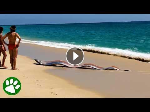 But the moment got even stranger. Just as they finished helping the first one, they spotted another oarfish near the shore. Seeing even one is extremely rare. Seeing two in the same place is almost unheard of.