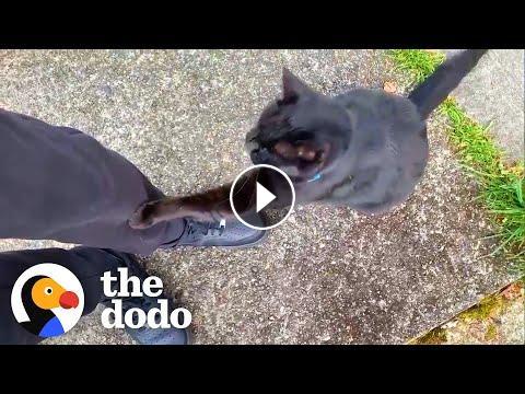 All the neighborhood cats run to greet this guy when he goes on walks — and one ends up changing his life