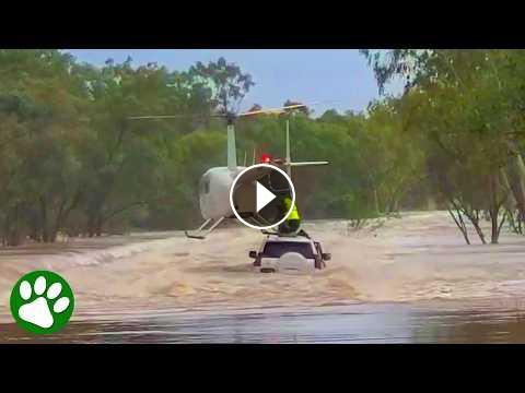 A dramatic helicopter rescue saves a trapped dog during a devastating flood. During severe flooding in Katherine, Australia, a dog became stranded inside a car surrounded by rising water. With no way out, the situation quickly turned critical. That’s when emergency responders stepped in. An officer was lowered from a helicopter onto the vehicle, carefully working to reach the terrified dog. As the pilot maneuvered above the floodwaters, every second counted. With precision and courage, the rescuer secured the dog and safely brought him into the helicopter.