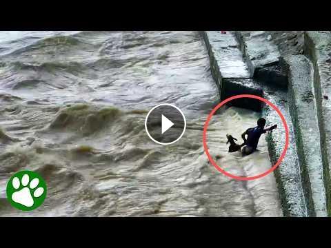 When a baby calf falls into the river, this brave young man acts immediately!