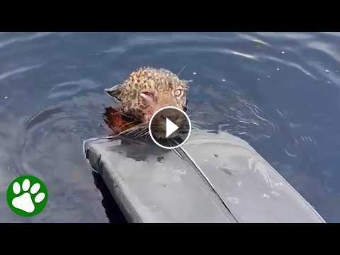 Found swimming in Brazil’s Rio Negro with gunshot wounds, the jaguar was guided to shore by military police using a flotation device. Veterinarians later found shrapnel pieces under his skin, broken teeth, and other injuries – but the jaguar is now stable and recovering at a zoo in Manaus.
