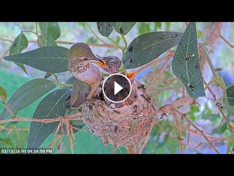 Lily Feeding her Baby Hummingbird Chicks 12 & 13 Days Old #Video
