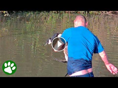 If you have a husband like this guy . . . ladies, you better appreciate him. Because men like this, don't stay on the market for very long. Looks like he took out his pocketknife when he got in the water so I'm fairly confident he cut & removed the rope that caused the problem. Great guy. Buy him a beverage.