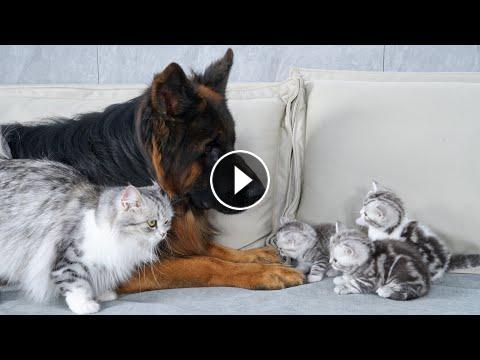 Mom Cat Shows Her Kittens The German Shepherd Is Safe #Video