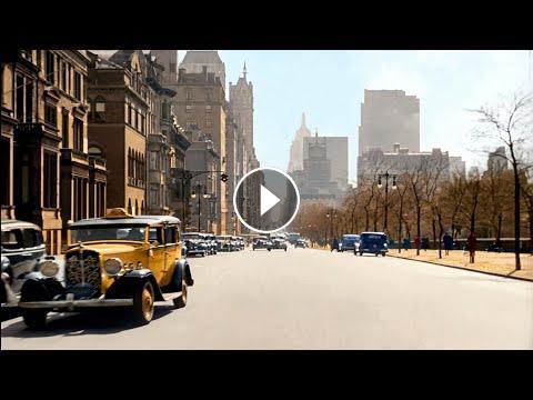 This footage has been processed using a modern colorization workflow, fully restored and sound-designed. It captures New York in the 1930s, featuring scenes from Fifth Avenue, 60th Street, 70th Street, and Central Park.