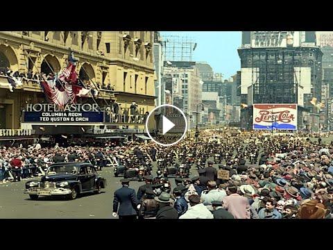I colorized, fully restored, and added immersive sound design to this rare footage of New York City's massive ticker-tape parade on April 20, 1951, honoring General Douglas MacArthur. Millions of New Yorkers filled the "Canyon of Heroes" on Lower Broadway to, creating a blizzard of paper and confetti as MacArthur, alongside Mayor Impellitteri, waved to the adoring crowds from his limousine. This historic event, one of the city’s most spectacular parades, showcased the immense public admiration for the general and remains one of New York's most memorable celebrations.
