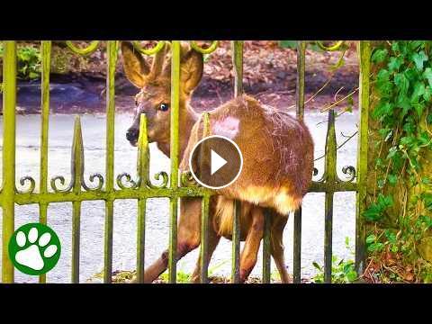 A deer became trapped when trying to jump through a set of iron gates, requiring a swift and skilled wildlife rescue. A heroic rescue team arrives and carefully works to free the frightened animal, demonstrating incredible kindness and dedication. This heartwarming rescue highlights the importance of helping animals in distress.