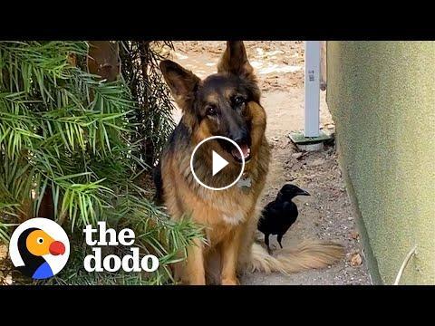 Rescue Crow Goes On Walks With His Favorite German Shepherd #video