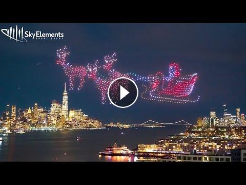 Sky Elements brought this holiday drone show to New York City, featuring classic Coca-Cola Christmas icons, like Santa with a bottle of Coke and the Coca‑Cola Holiday Caravan truck!