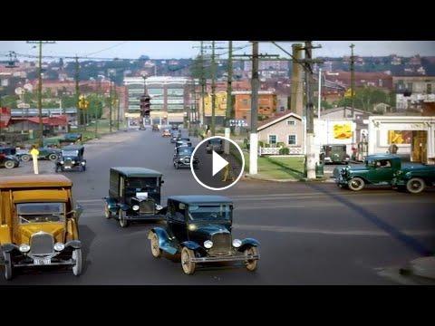 Seattle 1930s in color, Street Scenes [60fps,Remastered] w/sound design Added #Video