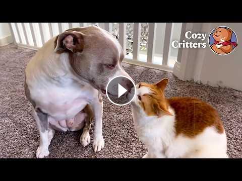 What began as curiosity turned into a daily routine of care, calmness, and affection between a pit bull and two kittens.