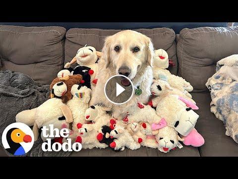 Senior Golden Loves His Lambchop Stuffed Animal More Than Life Itself #Video