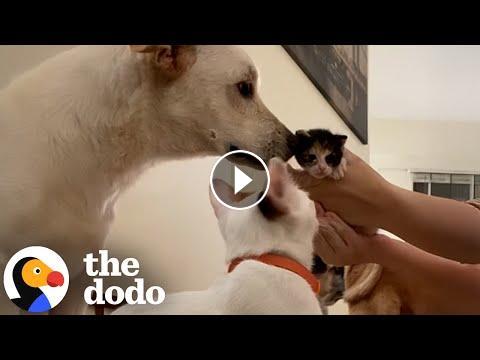 Skinny Dog Found On The Side Of The Road is Now A Big Sister to Foster Kittens #Video