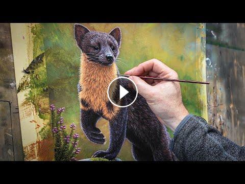 From field to final painting, watch this timelapse to see how I bring this painting of a pine marten to life.